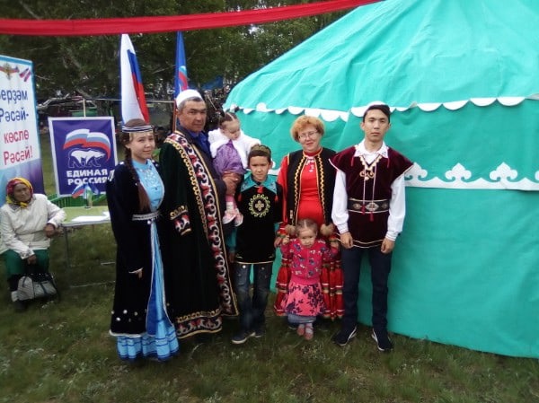 В День национальной одежды в школе и детском саду с. Мерясово прошел флешмоб "Моя семья в национальной одежде".